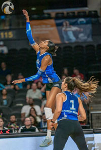 Dallas Pulse opposite hitter Kelsie Payne connects during the upset victory in Orlando.