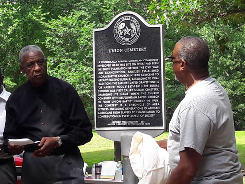 Mickey Hill performed the unveiling of the Texas Historical Marker and closing remarks were by Dennis White, president of Union Cemetery.