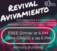 Las iglesias de las Asambleas de Dios de Bonham lo invitan a un avivamiento en el Bonham Armory Building (1100 W 5th St) el viernes 27 de septiembre a las 7 PM, con una cena gratuita para todos los que se sirven antes del evento a las 6 PM.