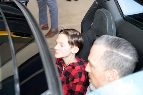 Everyone was careful not to promise a ride until it was confirmed Cory’s oxygen apparatus, which is about the size of a carry-on bag on wheels, would fit inside the passenger cabin of the two-seater performance car.