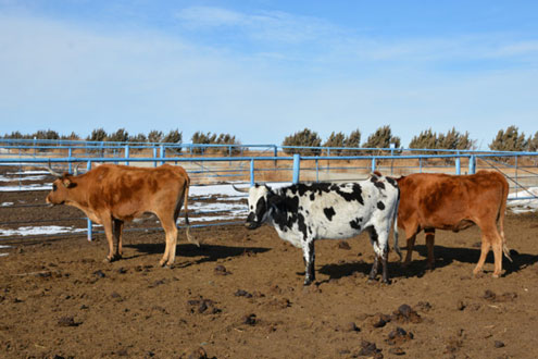 A set of calves grazing winter pasture at the New Mexico State University Clayton Livestock Research Center near Clayton, New Mexico, may look typical of Texas High Plains cattle, but this group is special – they are Raramuri Criollo crossbred calves.