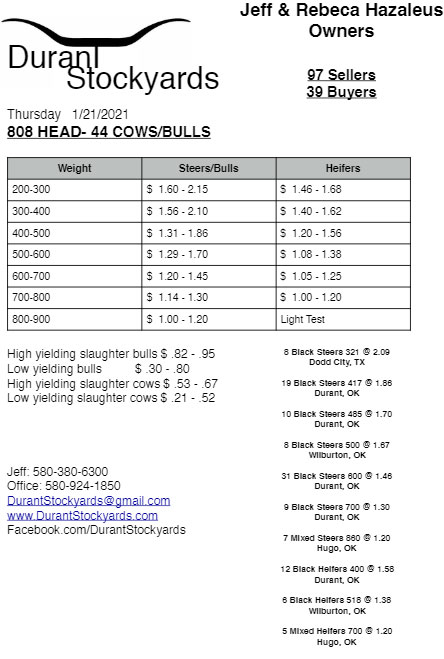Durant Stockyards market report