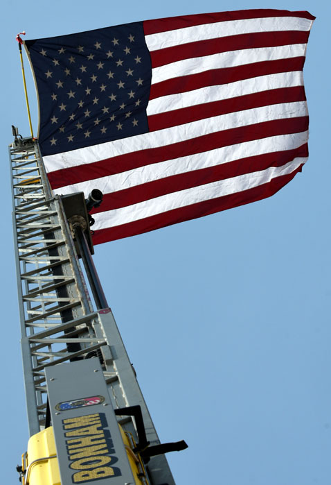 Bonham, Texas -- Old Glory was proudly waving over downtown Bonham on September 11, thanks to the men and women of Bonham Fire Department.
