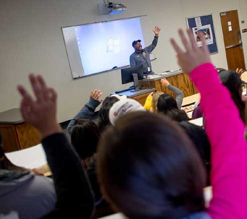 Peer mentoring classes are taught by a diverse set of upperclassmen, from Honors College students to those who can share their valuable experiences after climbing back from academic probation. Students learn self-presentation skills and receive guidance through the hidden curriculum of higher education, such as the meaning of various acronyms and when to register.