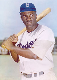 1946 – Jackie Robinson makes his regular season debut for the Montreal Royals of the International League, to make them the first integrated modern professional baseball team. Jack Roosevelt Robinson (January 31, 1919 – October 24, 1972) was an American professional baseball player who was the first African American to play in Major League Baseball (MLB) in the modern era. Robinson broke the color line when he started at first base for the Brooklyn Dodgers on April 15, 1947. The Dodgers signing Robinson heralded the end of racial segregation in professional baseball, which had relegated black players to the Negro leagues since the 1880s. During his 10-year MLB career, Robinson won the inaugural Rookie of the Year Award in 1947, was an All-Star for six consecutive seasons from 1949 through 1954, and won the National League (NL) Most Valuable Player Award in 1949—the first Black player so honored. Robinson played in six World Series and contributed to the Dodgers' 1955 World Series championship. He was inducted into the Baseball Hall of Fame in 1962 in his first year of eligibility. Robinson's character, his use of nonviolence, and his talent challenged the traditional basis of segregation that had then marked many other aspects of American life. He influenced the culture of and contributed significantly to the civil rights movement. In 1997, MLB retired his uniform number, 42, across all Major League teams; he was the first professional athlete in any sport to be so honored. MLB also adopted a new annual tradition, "Jackie Robinson Day," for the first time on April 15, 2004, on which every player on every team wears the number 42.