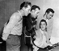 1956 – The Million Dollar Quartet (Elvis Presley, Jerry Lee Lewis, Carl Perkins, and Johnny Cash) get together at Sun Studio for the first and last time. "Million Dollar Quartet" is a recording of an impromptu jam session involving Elvis Presley, Jerry Lee Lewis, Carl Perkins and Johnny Cash made on December 4, 1956 at the Sun Record Studios in Memphis, Tennessee. An article about the session was published in the