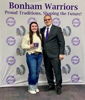 In a special presentation, Bonham Mayor John Burnett (left) became the latest person to receive a custom writing pen fashioned out of local bois d'arc wood, courtesy of local bois d'arc craftsman David Keene. Burnett was sworn in as mayor on December 8, 2025, after former mayor H. Compton resigned in order to enter the race for Fannin County judge.