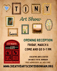 The Creative Arts Center is excited to have two exhibits and two opening receptions for the month of March. The Tiny Art Show will officially open on Friday, March 6 with a come and go reception from 5:00-7:00 p.m. A special exhibit “The Artful Life and Work of Ruth Anderson” will kick off on Sunday, March 8 with a come and go reception from 2:00-4:00 p.m. Ruth is a creative 96-year-old woman and will be at the Sunday afternoon reception.