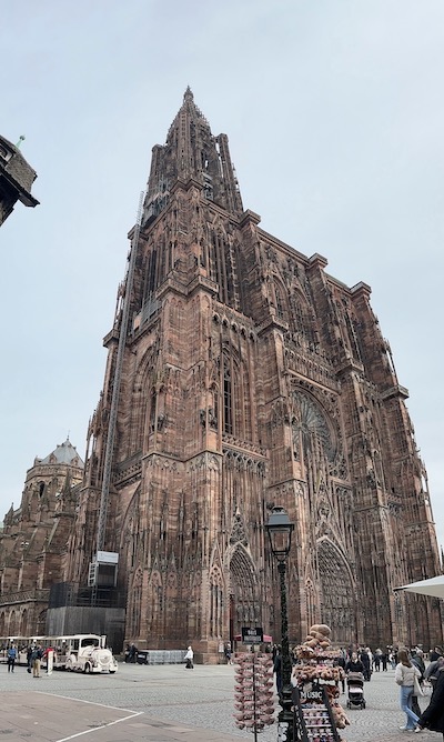 Strasbourg’s cathedral is beautiful, the organ complex amazing. Constructed between the years of 1015 and 1439, it was originally supposed to have two spires. Succeeding architects changed it to an octagonal tower. It was damaged during World War II and finally restored in the early 1990s.