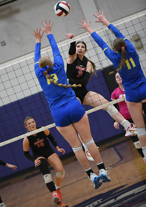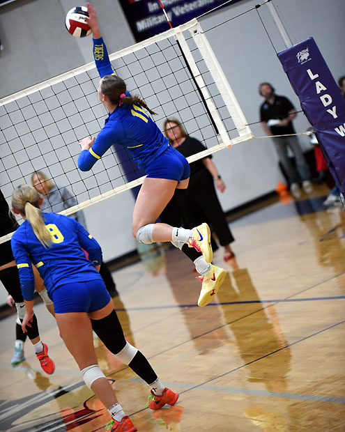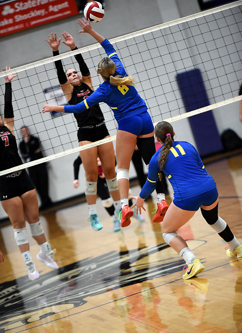Bella Neaville and Leah Stoy combined to knock down 30 kills. Neaville slammed down 16 kills, Stoy finished with 14 kills, Madison Jones put down eight kills, Riley Brown had three kills, Ava Flowers tallied a pair of kills and Avery Ross had one kill.