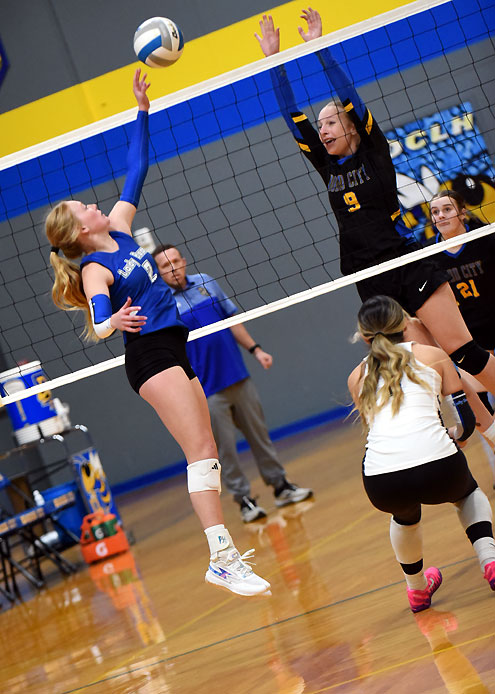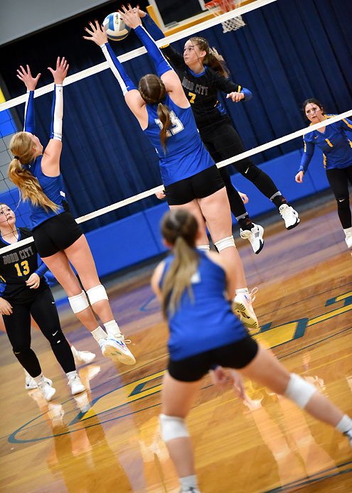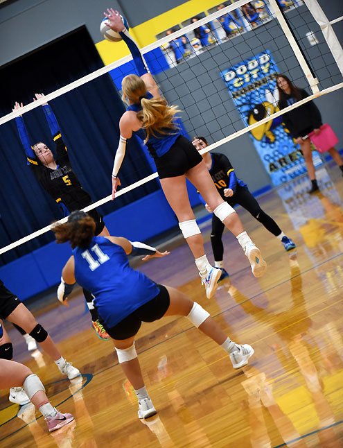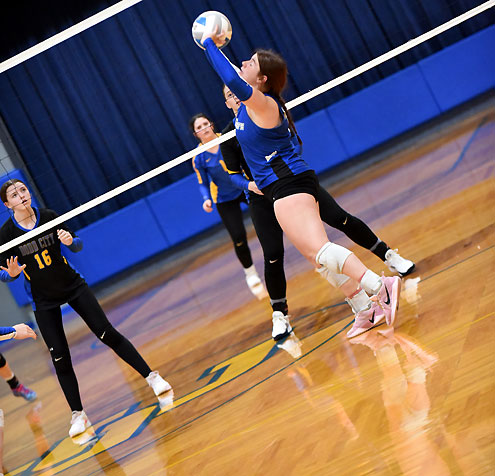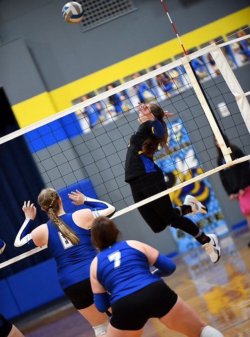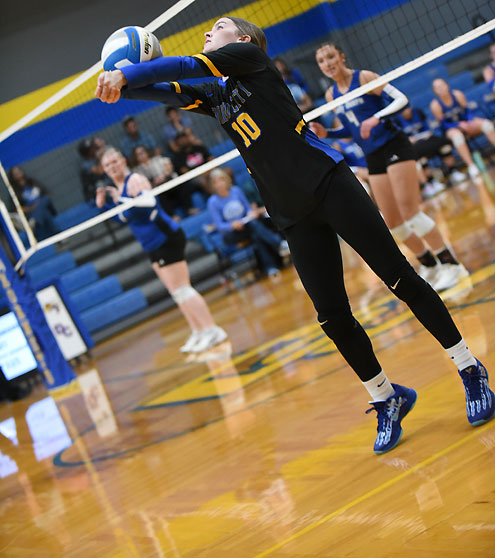 Addison Weeks led all hitters with 14 kills, Gracyn Shindler knocked down nine kills, Kodi Dorau had three kills, Kaleigh McBrayer put down a pair of kills and Caroline Lackey had one kill.