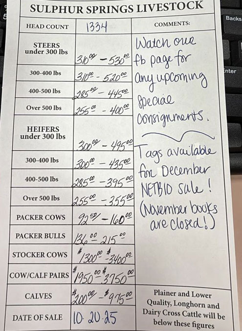 Sulphur Springs Livestock Auction market report