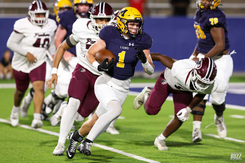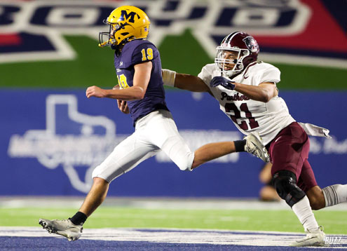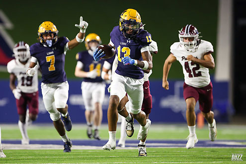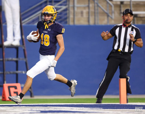 McKinney High's Griffen Shelley (19) scores a touchdown against Princeton on Friday, October 3, 2025 at McKinney ISD Stadium.