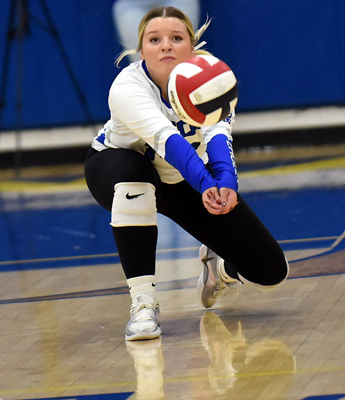 Olivia Aylor finished with five aces and nine digs, leading Leonard in both categories.