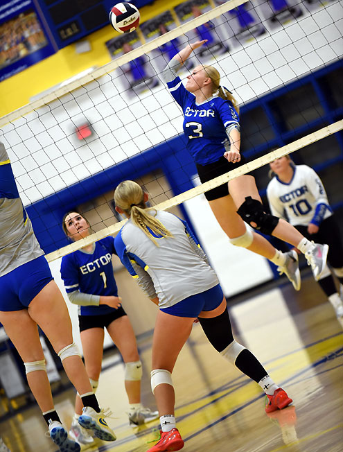 Leonard took the first set, 25-18, but Ector evened up the match with a 25-16 victory in the second set.