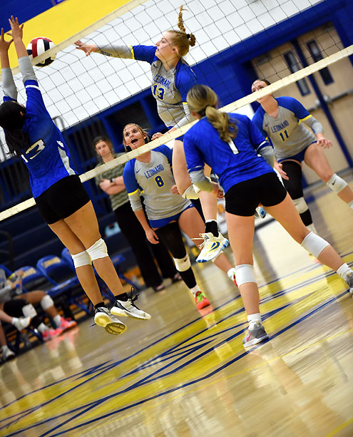 Bella Neaville led the Leonard attack with 10 kills, Riley Brown was close behind with nine kills, Madison Jones sslammed down seven kills, Avery Ross and Leah Stoy both finished with five kills, Ashlynn Cavendar had four kills, Ava Flowers put down a pair of kills and Caroline Holton had one kill.