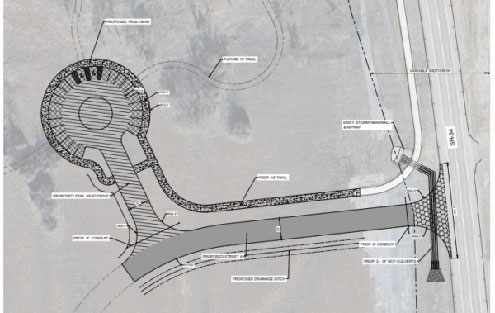 Construction will begin shortly on a trailhead for the SH 34 bike/pedestrian path over the North Sulphur River and includes a parking lot that will serve both the trailhead and the visitor center (design shown above). Upper Trinity has hired a contractor, and completion is expected next spring. Designed for just over 20 vehicles, the parking lot and trailhead will make it easier for residents and visitors to enjoy the lake and new trails for years to come.