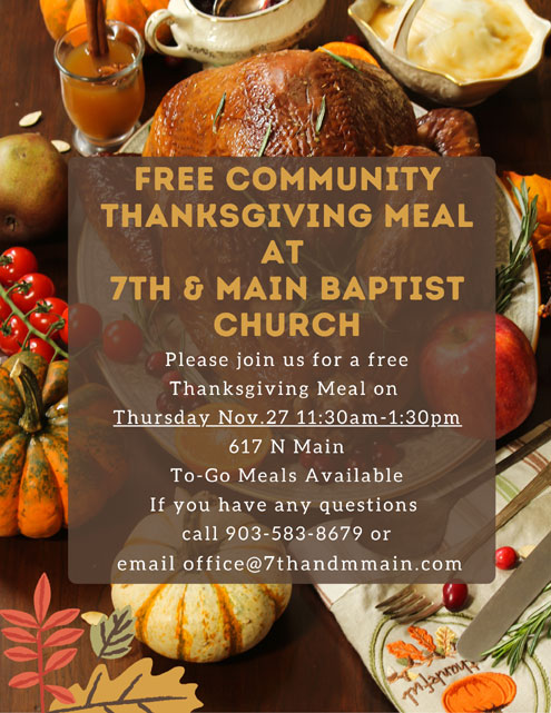 Free Community Thanksgiving Meal at 7th & Main Baptist Church