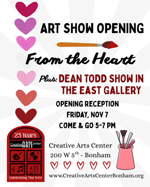 Bonham, Texas -- November's art show theme at Creative Arts Center in Bonham is From the Heart.