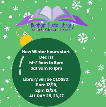 Bonham Public Library schedule for December