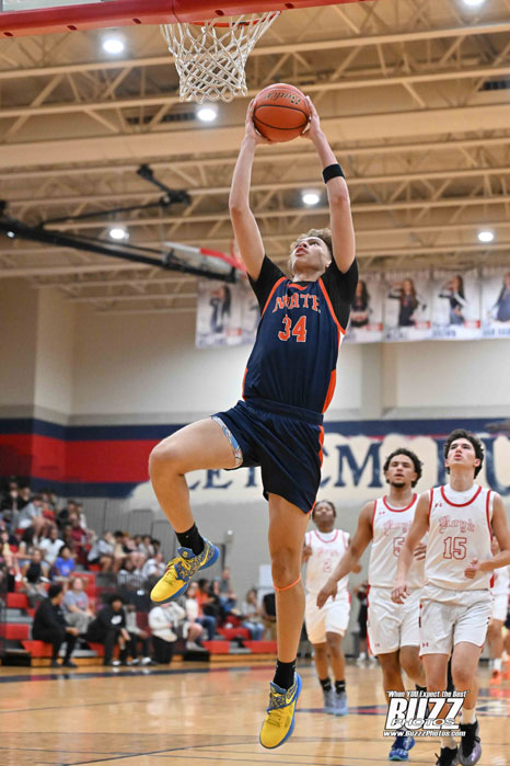 McKinney North Bulldog Preston Spolar (34) with a layup basket.