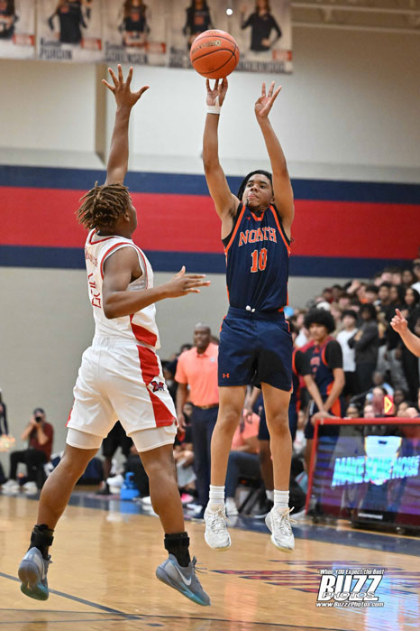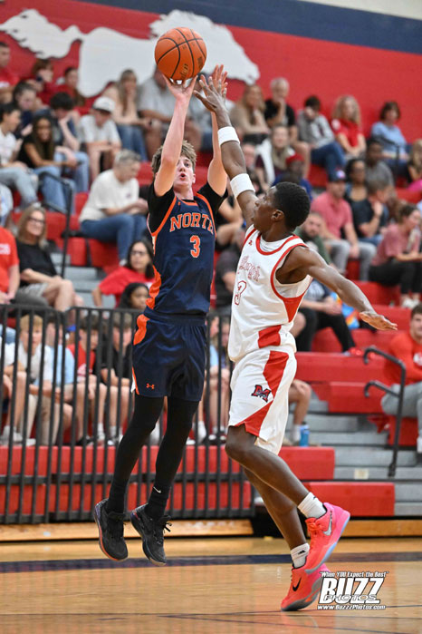 McKinney North Bulldog Kaeler Impelman (3) shoots from the 3 point line to start the game for McKinney North.