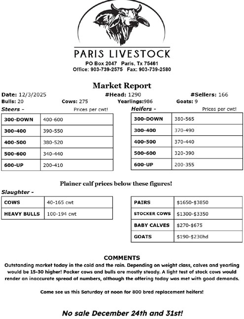 By Paris Livestock Commission