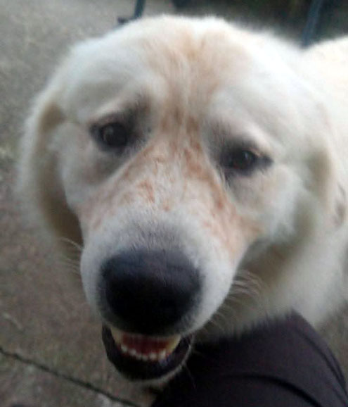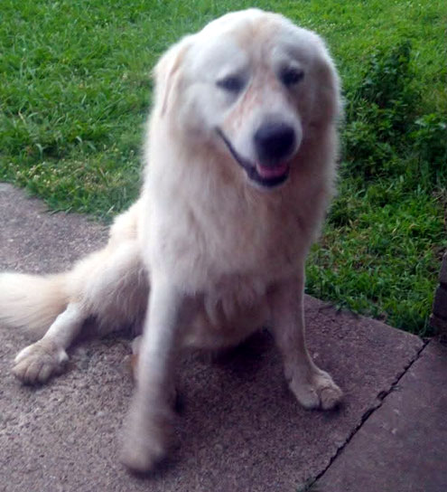 Randolph, Texas -- Kaiser is a very friendly male great Pyrenees. He's been missing since November 24. He escaped our fenced property with a stray black/brown dog that runs from people. Kai loves people and to chase rabbits and squirrels. I think he chased and lost his way home. Then the rain washed the scent home.