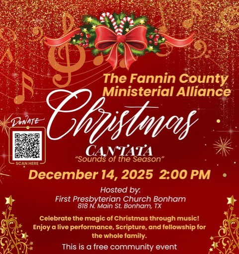 Bonham, Texas -- Celebrate the magic of Christmas when First Presbyterian Church in Bonham hosts Christmas Cantata: Sounds of the Season on Sunday, December 14, 2025 at 2:00 p.m. Enjoy a live performance, Scripture, and fellowship for the entire family.