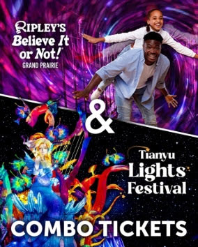 Valid through Jan. 18, 2026. Combo sold through Tianyu Lights Festival. Includes all five Ripley’s Grand Prairie attractions and Tianyu Lights entry.