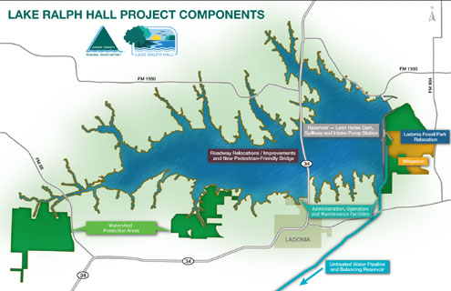 Lake Ralph Hall is well on its way to securing a long-term, reliable water supply for generations to come. Both the dam and water delivery system are nearly finished, with the lake on schedule to begin filling in 2026 and delivering water later in the year. Recreation and public access will open later, once the lake is filled and safe for recreational use.