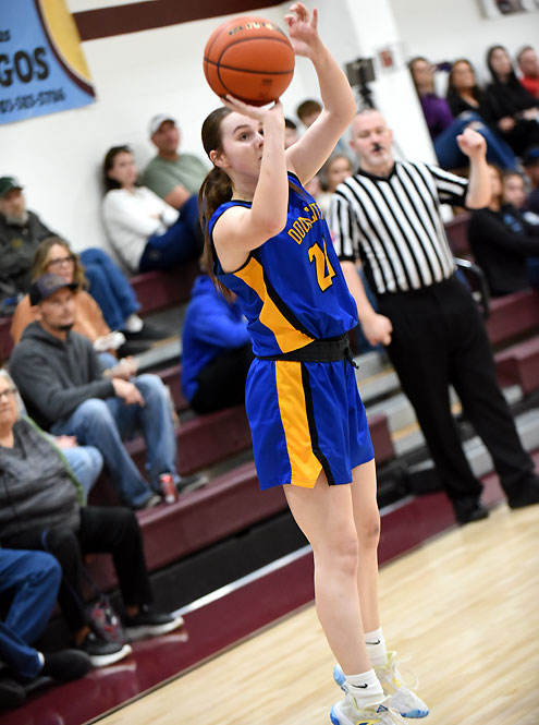 The Lady Hornets went on a 16-0 run in the first quarter. Dodd City's Kodi Dorau got the scoring started with a basket in the paint. Gracyn Shindler dropped in a lay-up and then hit a baseline jump shot. Addison Weeks put up the next 10 points with a pair of lay-ups and two three-point shots.
