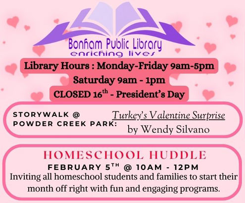 Bonham Public Library schedule for February