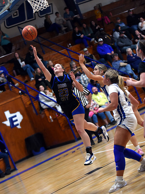 Ector scored the first basket of the game, but Dodd City reeled off a 19-0 run to take control. The Lady Hornets had a 25-4 lead after the first quarter and Dodd City took a 40-8 advantage into the locker room at halftime.