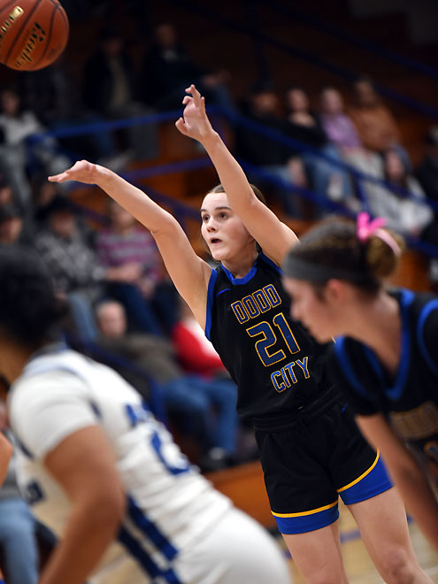 Dodd City senior Addison Weeks put up 11 points in the opening period and came close to a quadruple double with 23 points, 11 steals, nine assists and eight rebounds.