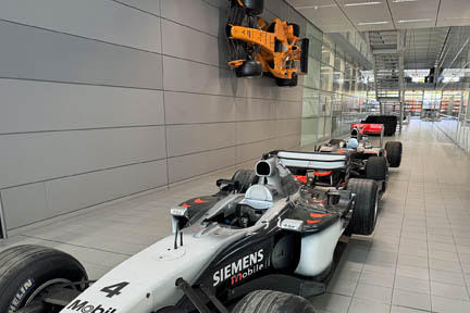 Just inside the MTC’s expansive entry, which is referred to as “The Boulevard,” is a statue of McLaren founder and racing legend Bruce McLaren standing next to the Austin 7 Ulster race car he restored as a teenager. Some consider it McLaren’s first race car, the genesis of the brand’s DNA. The MTC is part museum - part production facility – part futuristic laboratory, developing innovative technology for both the racing teams and production cars.