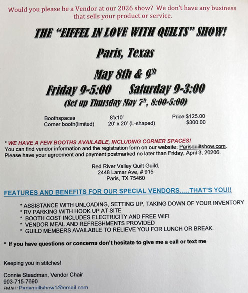 'Eiffel in Love With Quilts' show in Paris May 8-9