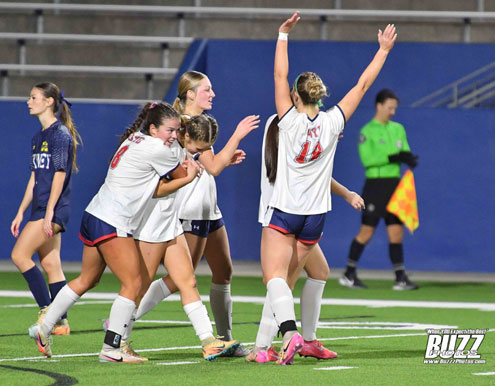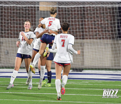 McKinney Boyd Lady Broncos Celebrating a goal in tonight's 4 - 0 win over the Mckinney High School Lionettes.