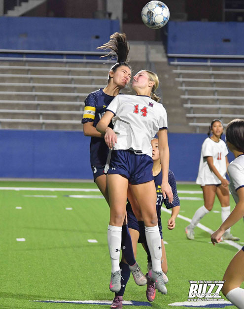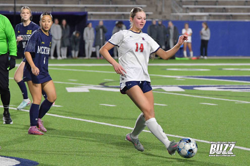McKinney Boyd Lady Bronco Sienna Schutte (14) had a big night scoring a Hat Trick with 3 goals leading the Lady Broncos to a 4-0 win over the McKinney Lionettes
