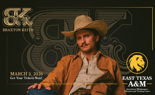 “I am excited to be part of the grand opening of this incredible new building,” said Jeff Bemis, general manager of the Spur Expo. “It represents growth, community and a bright future ahead for East Texas A&M and Commerce, Texas. Having Braxton Keith as our opening entertainer makes the celebration even more special; he's a fantastic choice and truly embodies the energy and spirit of the night. It will be an unforgettable evening filled with great rodeo action, amazing music and a whole lot of fun for everyone.”
