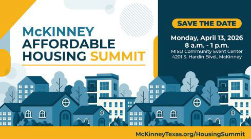 In partnership with community and business leaders, an inaugural McKinney Affordable Housing Summit will be held on Monday, April 13, 2026, from 8:00 a.m. to 1:00 p.m. at the MISD Community Event Center (4201 S. Hardin Blvd., McKinney, TX 75070).