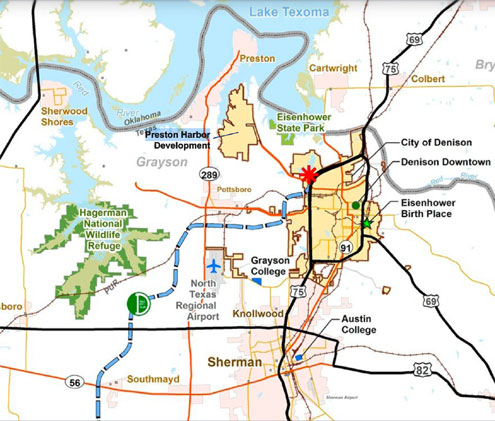 Located along one of the region’s most traveled corridors with traffic counts ranging from 30,000 to 60,000 vehicles per day on US-75, the site offers unmatched visibility and access. It is also positioned at the future intersection of the planned Grayson County Tollway, further enhancing its long-term connectivity and regional draw.