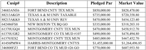 10. Approve Release of the below securities from Legend Bank County Treasurer