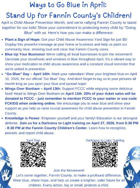 Ways to 'Go Blue' in April: Stand up for Fannin County's children