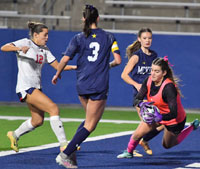 McKinney Lionette goalkeeper Elosia Souza (1) with a save. (photo by Lockard Koval/BuzzPhotos.com)