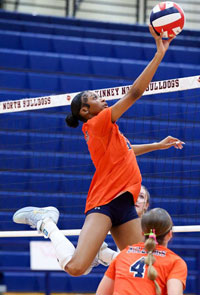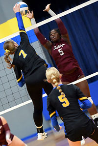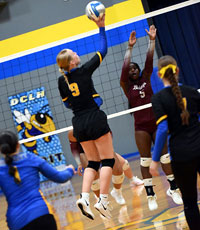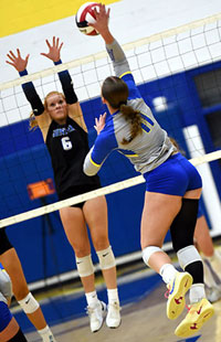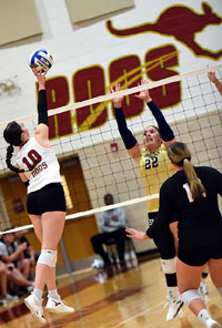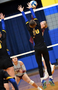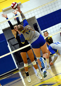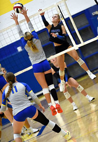 Leonard's Leah Stoy and Bella Neaville combined to knock down 33 kills during a five-set thriller in Blue Ridge on Tuesday, but the night ended with the Leonard Lady Tigers falling in a tiebreaker.