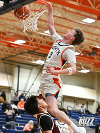 McKinney North's Kaeler Impelman got the crowd excited with a breakaway high-flying, basket-grabbing dunk. (photo by Lockard Koval/buzzphotos.com)