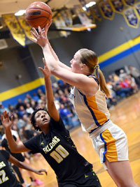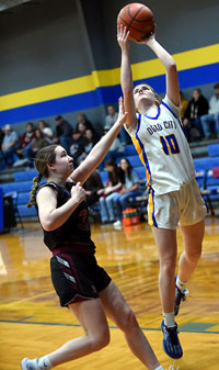 Dodd City's Kayleigh McBrayer banks in a shot. The Lady Hornets host Fannindel on Tuesday, February 3.