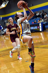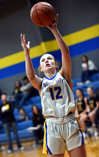 Dodd City freshman Makayla Camp puts up two points in a win over Era.