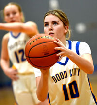 Dodd City junior Kayleigh McBrayer came out with the hot hand and knocked down nine points in the first quarter. (file photo)